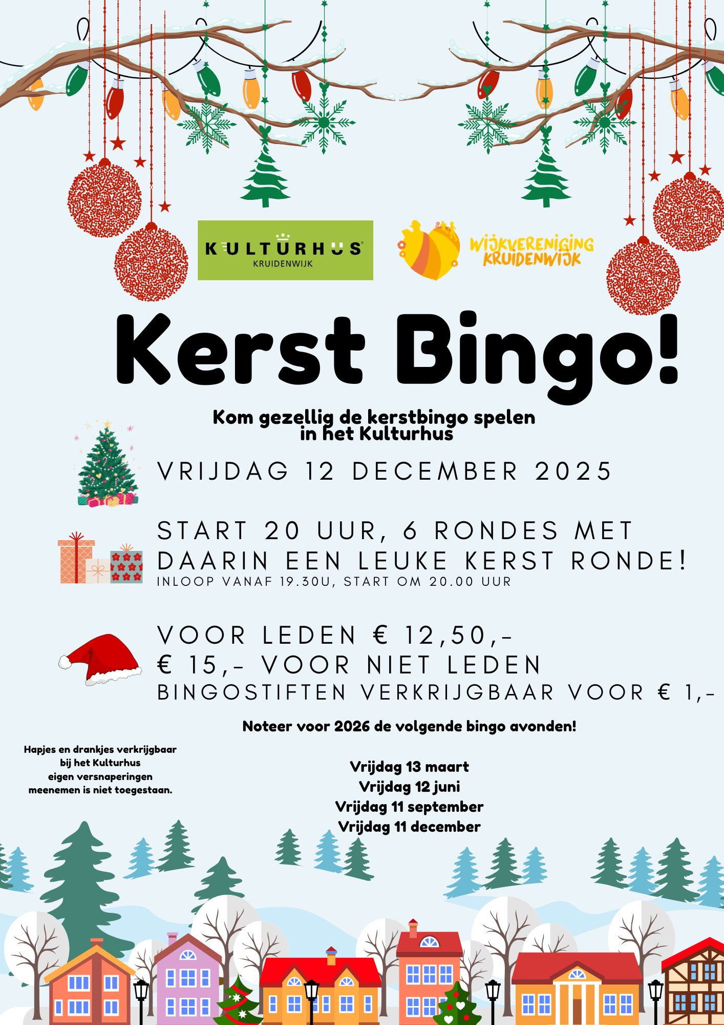 Komt allen naar de Kerst Bingo voor volwassenen op vrijdagavond 12 december 2025