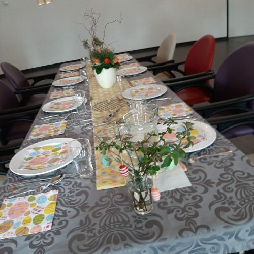 Het wijkteam van Zorgaccent heeft een eigen kantoor waar ze regelmatig gebruik van maken. Het wijkteam van Aveleijn helpt ons elke maandag en dinsdag mee met diverse werkzaamheden. Ook is stichting De Welle actief onder andere met samen eten, bloemschikken en dansen.